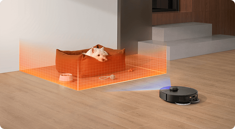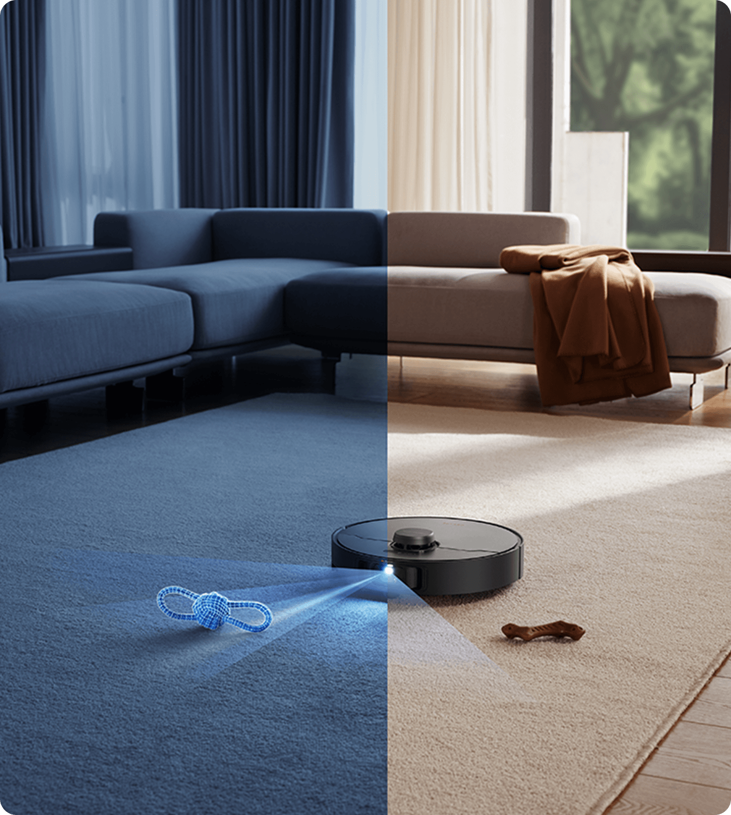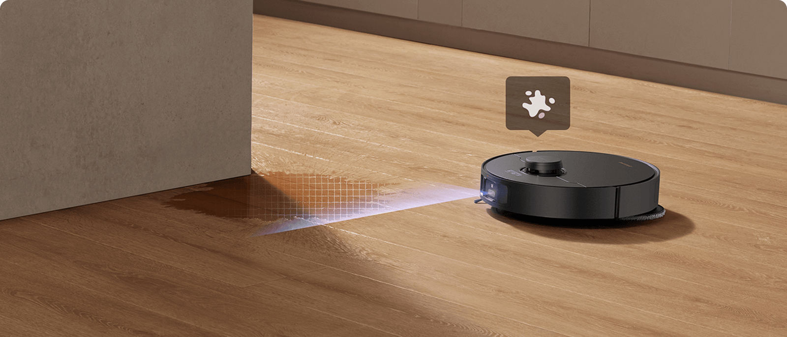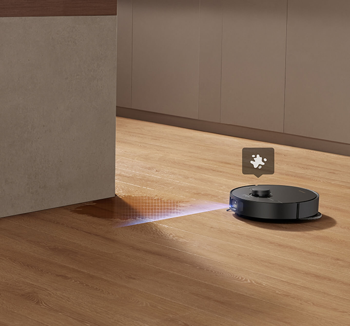 RGB-Kamera und ein System zur intelligenten Schmutzerkennung* für eine fortschrittliche Reinigungsleistung. Diese intelligente Technologie erkennt Verschmutzungen auf dem Boden und passt den Reinigungsmodus entsprechend an, um Staub und hartnäckige Flecken zu beseitigen. Dank der optimierten Geschwindigkeit von 0,1 m/s** werden Ihre Böden bei jedem Durchgang optimal gereinigt.