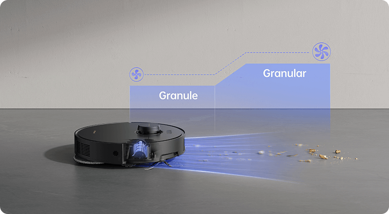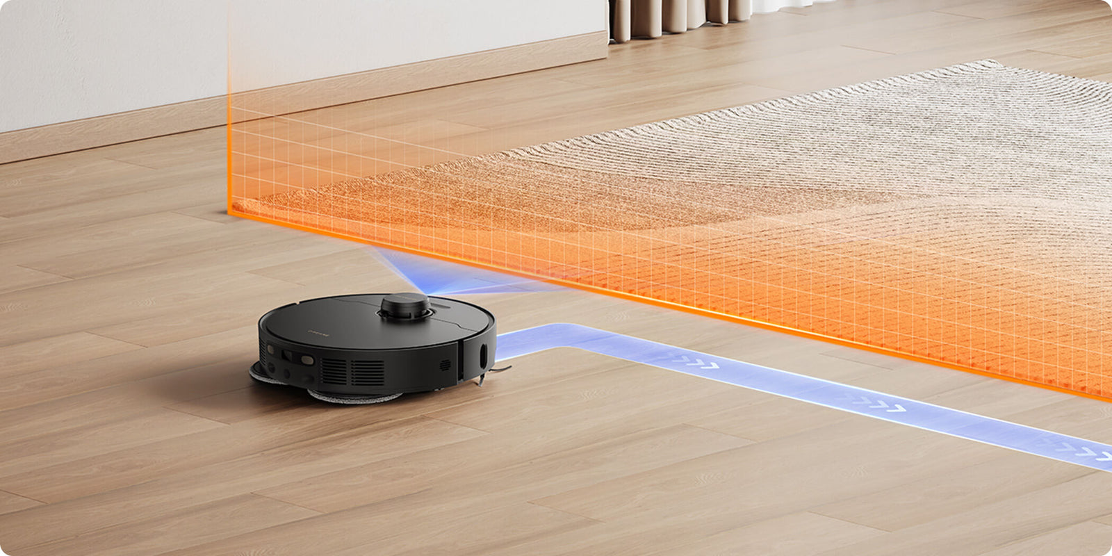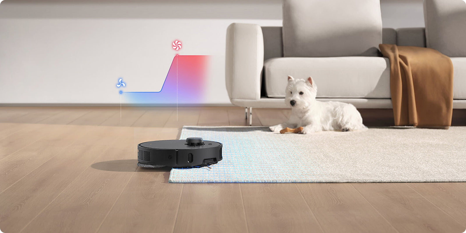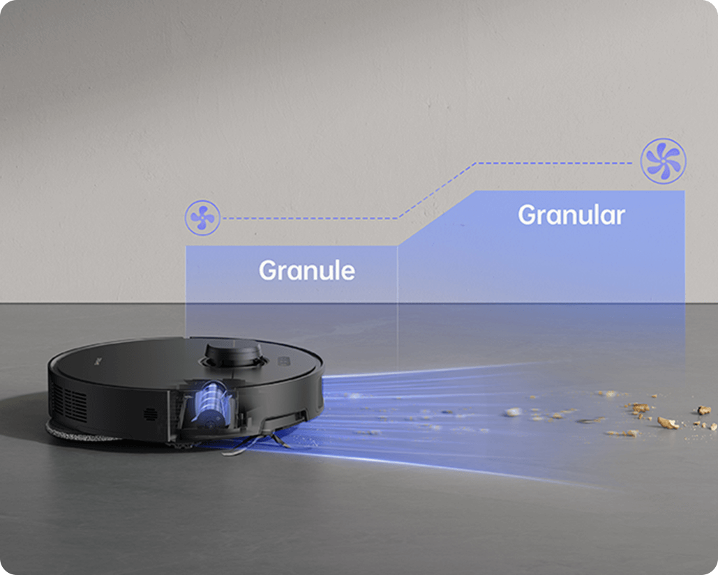 RGB-Kamera und ein System zur intelligenten Schmutzerkennung* für eine fortschrittliche Reinigungsleistung. Diese intelligente Technologie erkennt Verschmutzungen auf dem Boden und passt den Reinigungsmodus entsprechend an, um Staub und hartnäckige Flecken zu beseitigen. Dank der optimierten Geschwindigkeit von 0,1 m/s** werden Ihre Böden bei jedem Durchgang optimal gereinigt.