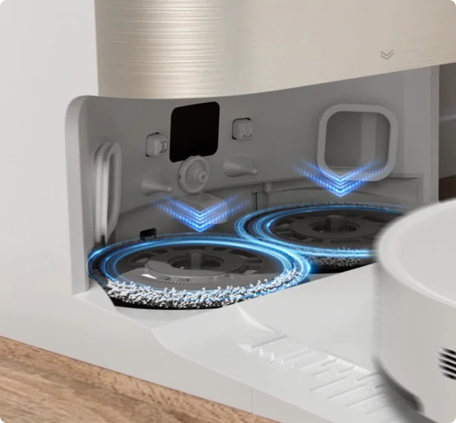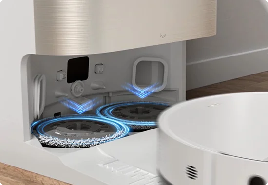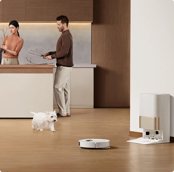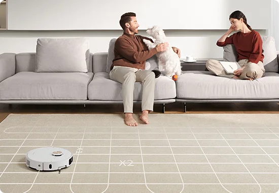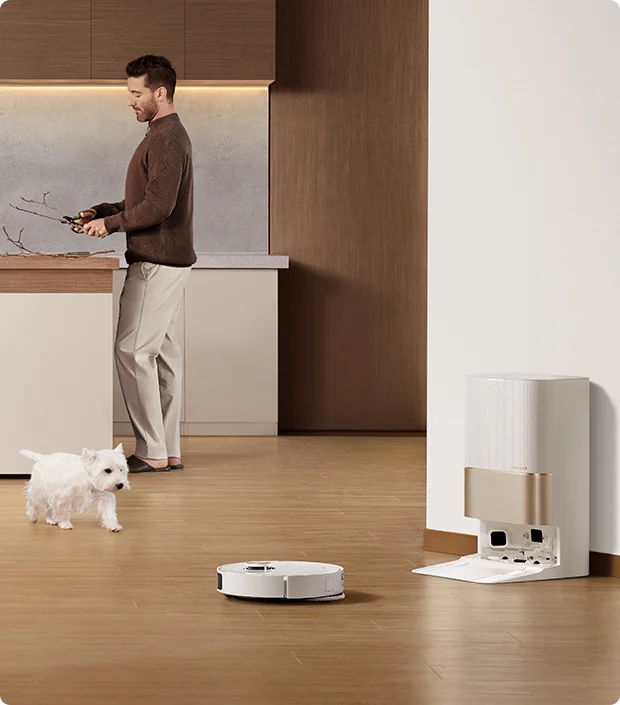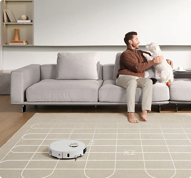 Der X40 Ultra Complete erkennt Schmutz und passt seine Reinigung entsprechend an – vom intensiven Staubwischen bis hin zum Entfernen hartnäckiger Flecken wie Sojasauce. Der Saugroboter verfügt über eine anhebbare Seitenbürste, die eine Verteilung des Schmutzes verhindert, und wischt bei niedriger Geschwindigkeit* besonders präzise.